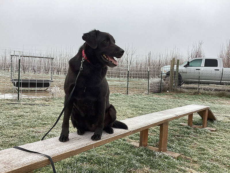 Black Labrador Retriever Spur, born 07/01/2022, is an altered male who weighs 78 pounds. He is a very sweet boy who we received as a puppy from Mikey’s Chance. Spur loves to play ball, but doesn’t like to bring it back. He has solid recall and down. He plays well with other dogs, is great with grooming, and good with cats.